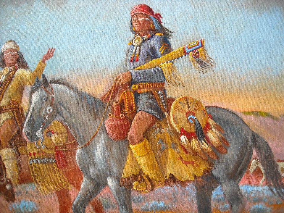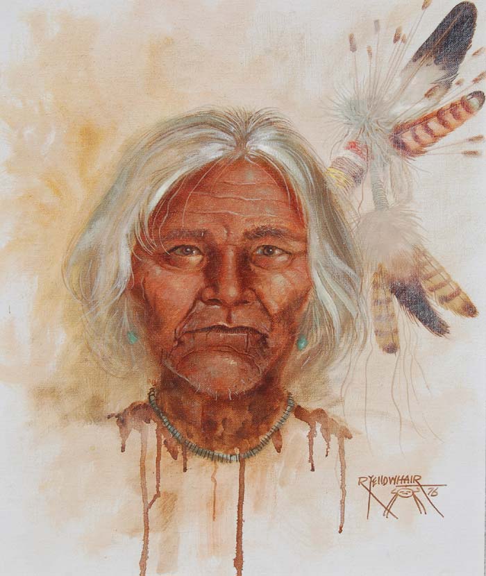 It’s Day 348 and I am excited about today’s artist that was recommended by my daddy-in-law Andy Lavin. The story of how he acquired his Yellowhair painting is below. Please join me in honoring Robert Yellowhair today!