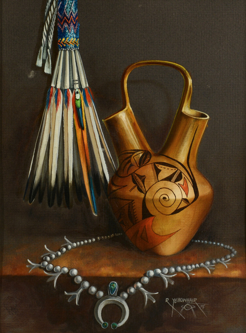 The distinguishing hallmark of Yellowhair’s work is the fresh, clean, vibrant color and the intricate detail which gives his paintings a three dimensional quality.