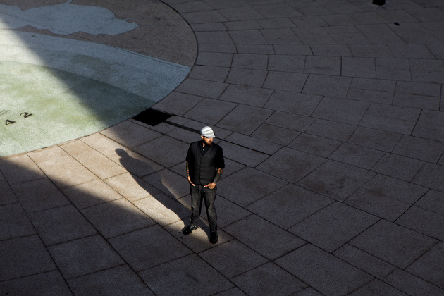 Though still based in the Bay Area, Black converted an orange cargo truck into a living and working quarters and lives an itinerant life these days. We caught up with him earlier this month in the Civic Center Plaza, the place where Occupy’s San Diego contingent gathered last year, also in front of the theater where San Diego Opera performs.