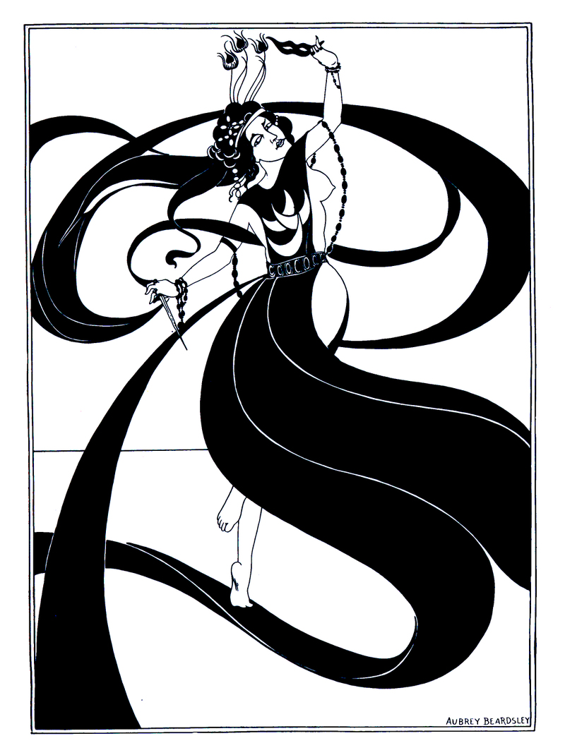 illustrations for a privately printed edition of Aristophanes’ Lysistrata, and his drawings for Oscar Wilde’s play Salome, which eventually premiered in Paris in 1896. Other major illustration projects included an 1896 edition of The Rape of the Lock by Alexander Pope, and the collection A Book of Fifty Drawings by Aubrey Beardsley (1897).