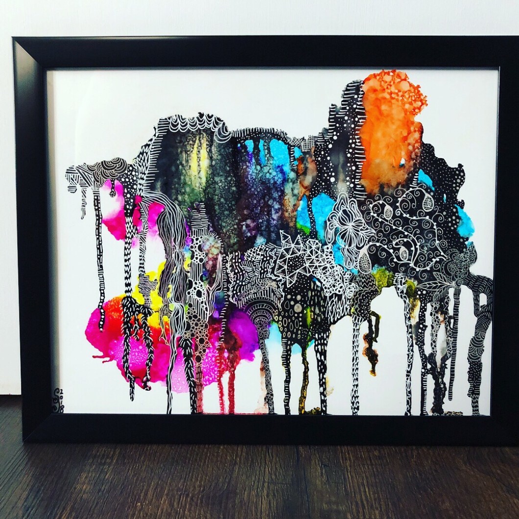 I have a new collection up for sale in my shop! Framed alcohol ink pieces of various sizes done on yupo paper.
